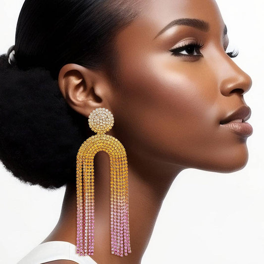 Fringe Sunset Pave Long Arched Earrings for Women