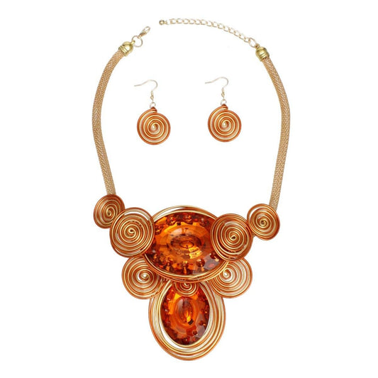Orange and Gold Wire Drilled Crystal Necklace