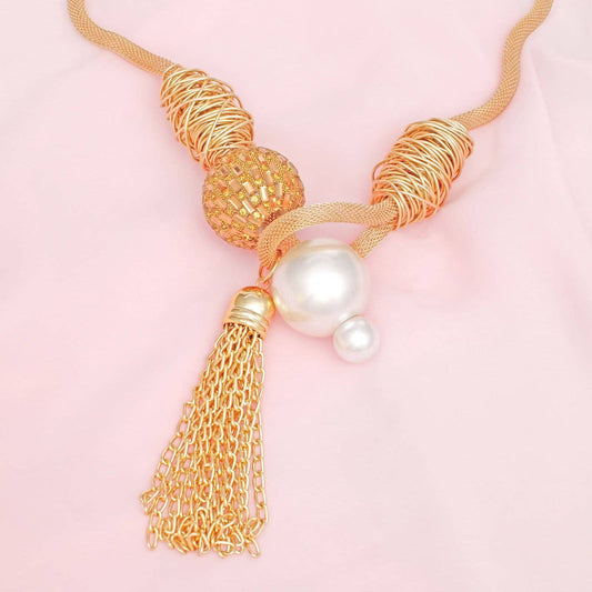 Toggle Pearl and Brown Tassel Gold Chain Necklace