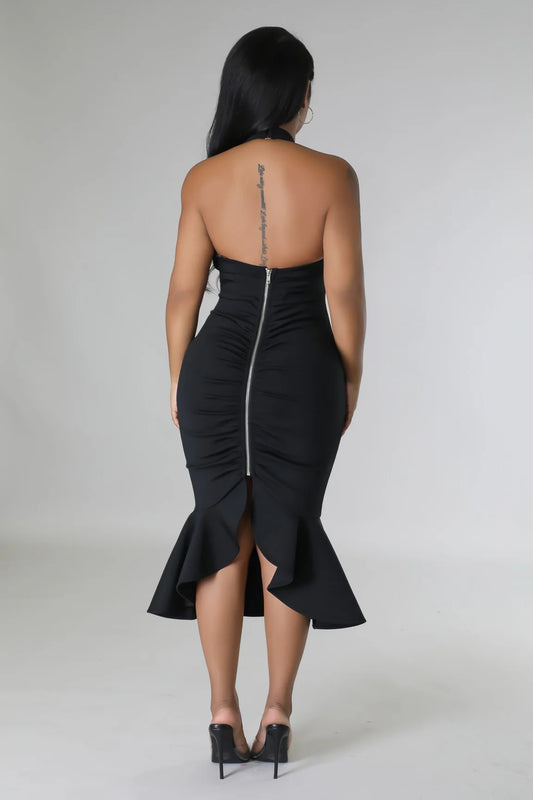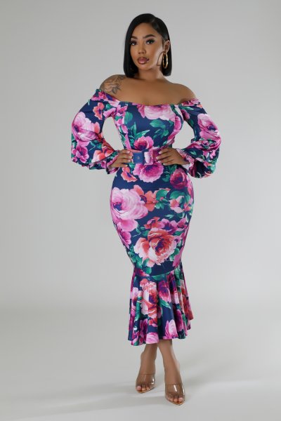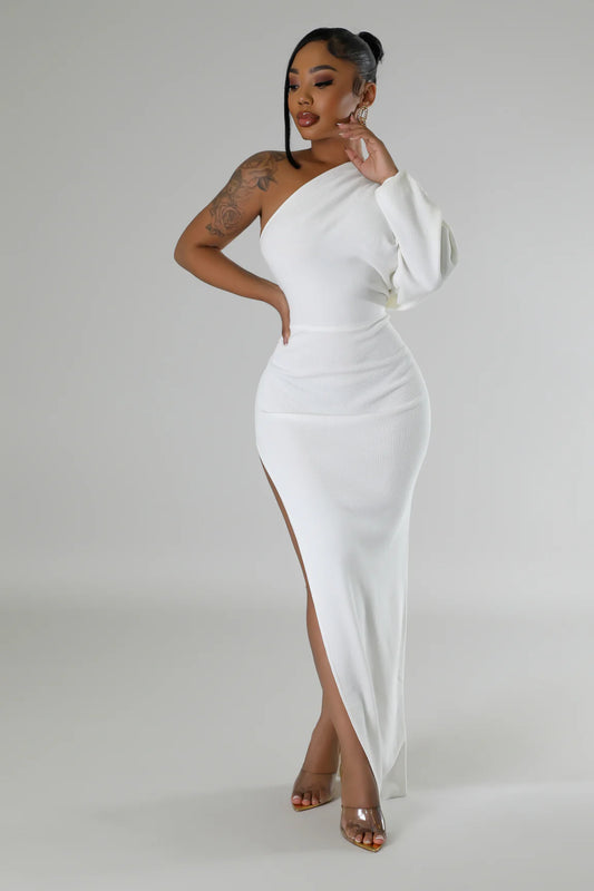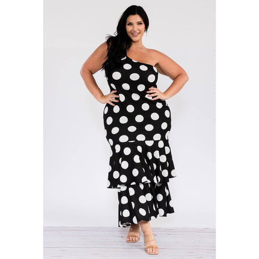 Polka Dot One Shoulder Ruffle Maxi Dress-CURVY