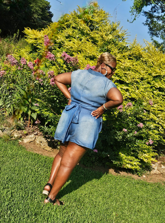 RAYON DENIM SLEEVELESS ROMPER-CURVY