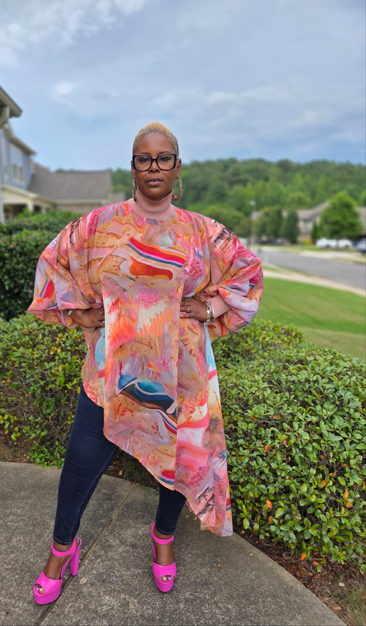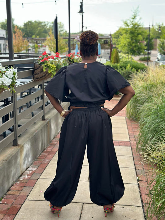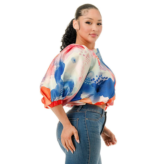 Balloon Short Sleeve Front Zip Bubble Cropped Top