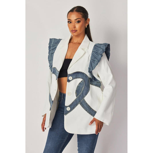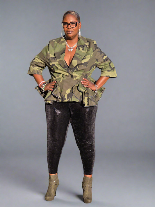 One Shoulder Long Sleeve Ruffle Detail Crop Top-CURVY