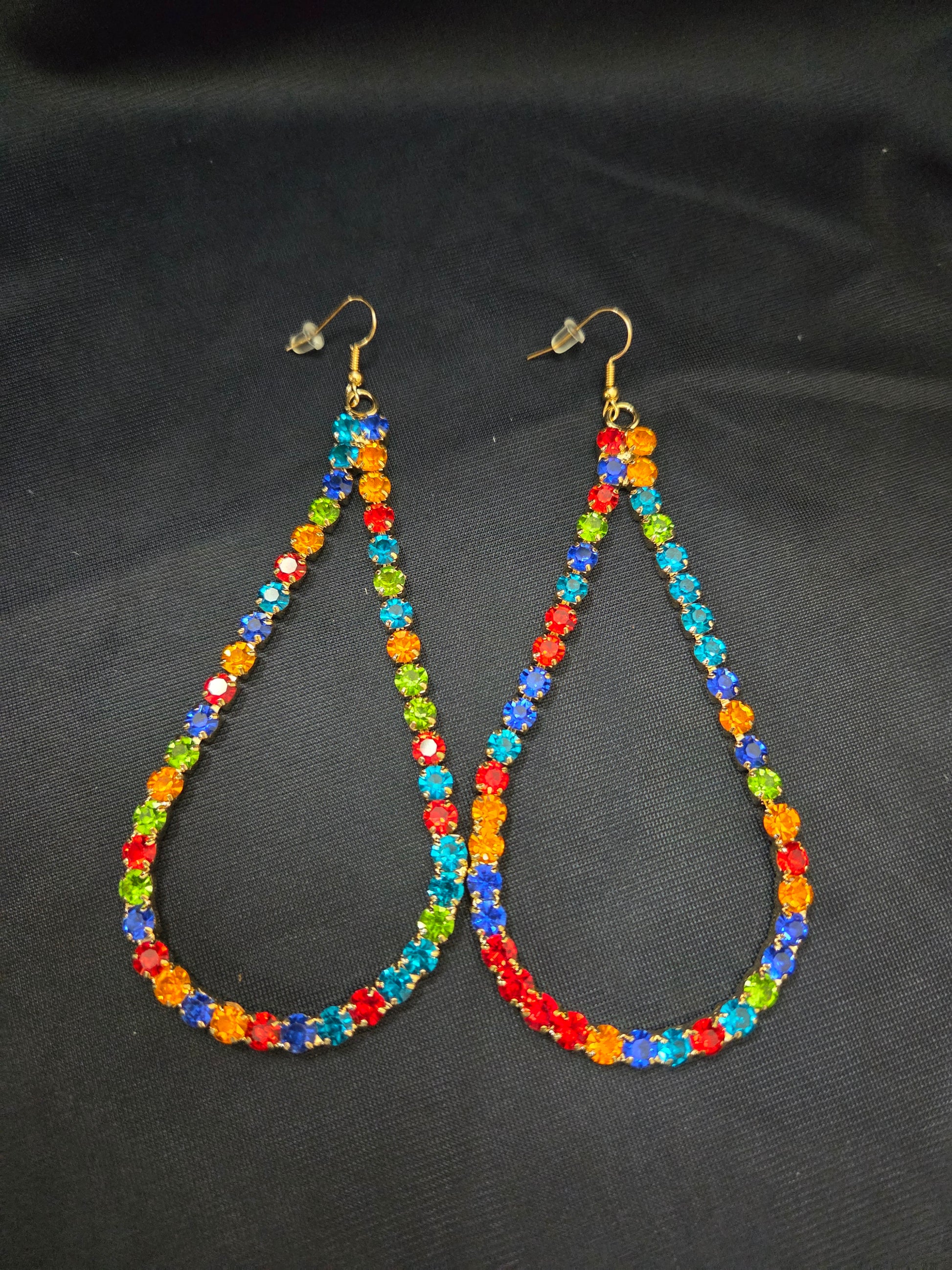 Exude elegance and playfulness with our Elongated Rainbow Crystal Earrings. The gradient drops of vibrant colored crystal add a gorgeous pop of color to your style. Elevate any outfit with these statement earrings. 4 inches long