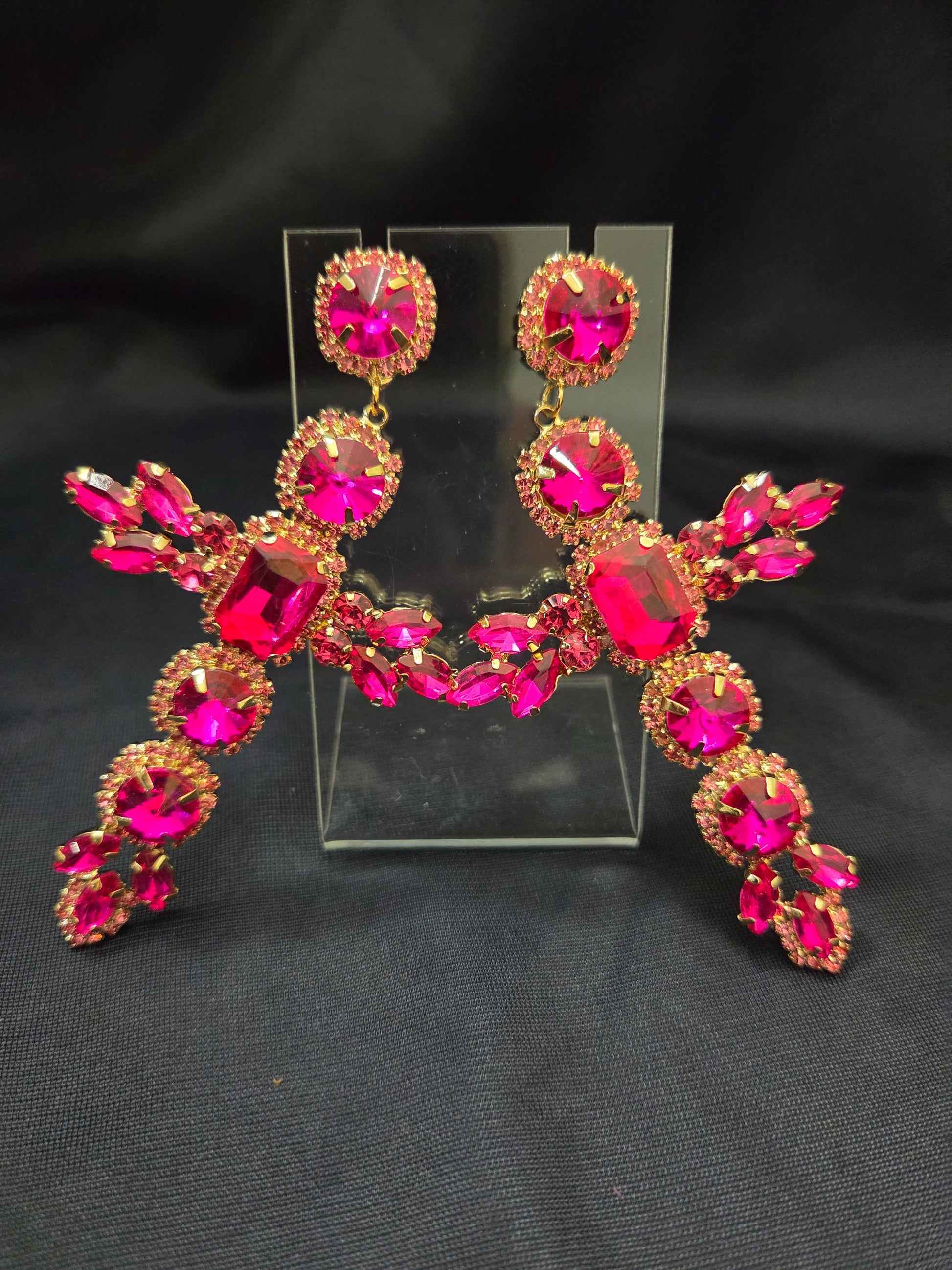 Add a touch of elegance to any evening outfit with these stunning Pink Cross Crystal Earrings. The long 3" drop design features sparkly pink crystals and a gold tone finish for a glamorous look. Perfect for date night or any evening affair, these earrings are sure to make a statement.