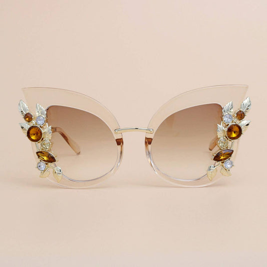 Sunglasses Brown Vintage Crystal Cat Eye Eyewear